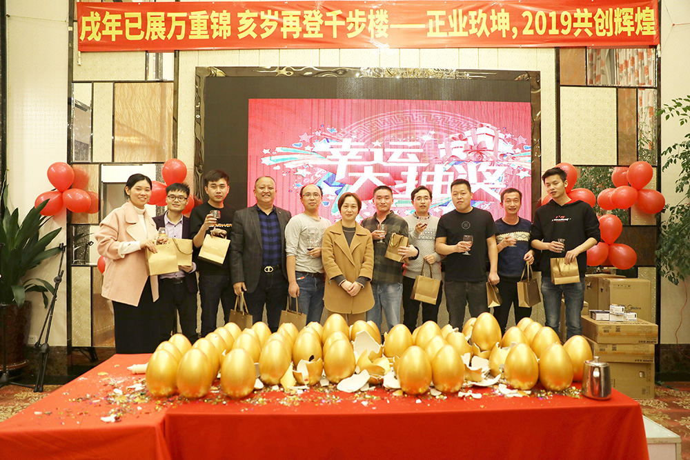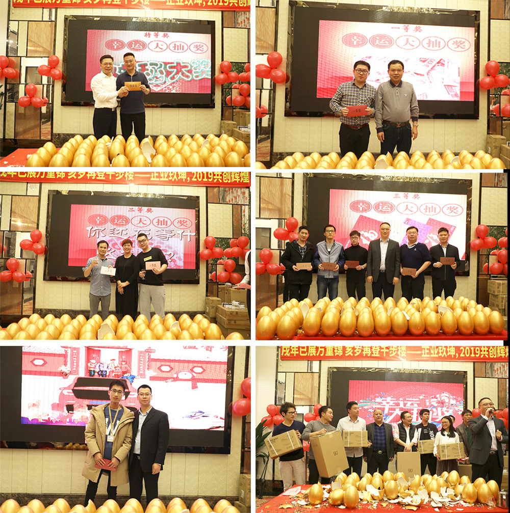 表彰環(huán)節(jié)結(jié)束后,迎來了一場場砸金蛋大抽獎,嗨翻全場,設(shè)置的獎項有特等獎、一等獎至四等獎、正業(yè)科技贊助獎以及幸運獎。