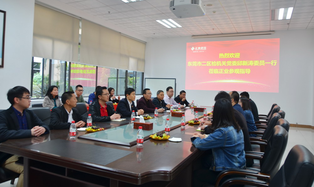 1月25日,為走進(jìn)、了解和支持民營企業(yè)黨建工作,東莞市二區(qū)檢機關(guān)黨委邱新濤委員一行20余人蒞臨正業(yè)科技進(jìn)行參觀考察交流。正業(yè)科技總裁辦主任雷卓林、總裁辦品牌部經(jīng)理周亮等領(lǐng)導(dǎo)熱情接待了來訪嘉賓。