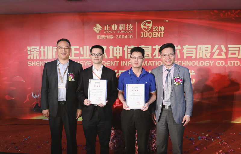 在龐克學(xué)總經(jīng)理激情洋溢的講話后,揭牌儀式正式啟動(dòng)。在眾多嘉賓和公司精英的見(jiàn)證下,正業(yè)科技董事長(zhǎng)徐地華、副總裁徐國(guó)鳳女士、副總裁徐地明、正業(yè)玖坤總經(jīng)理龐克學(xué)、副總經(jīng)理盧亞男女士共同按下揭牌儀式啟動(dòng)球,標(biāo)志著深圳市正業(yè)玖坤信息技術(shù)有限公司正式揭牌成立。